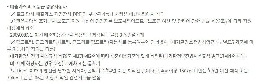 1. 대기관리권역 또는 신청지역에 6개월 이상 연속하여 등록(사용본거지를 말함)된 경유 자동차 및 건설기계(지게차 또는 굴착기)